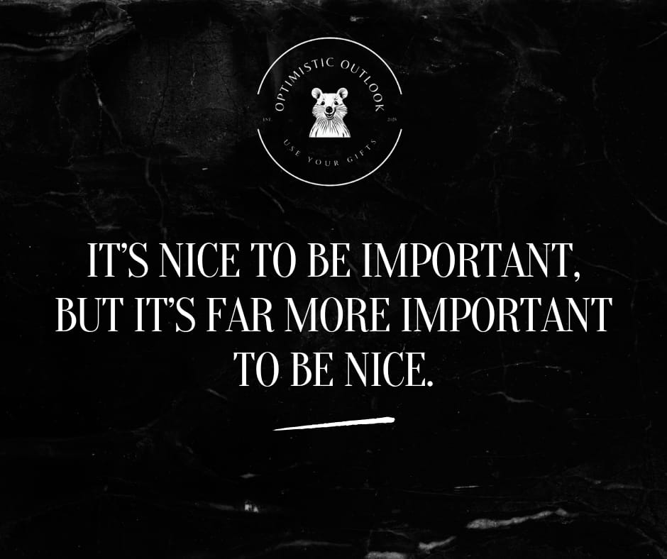 That’s when it hit me. It’s nice to be important, but it’s far more important to be nice.