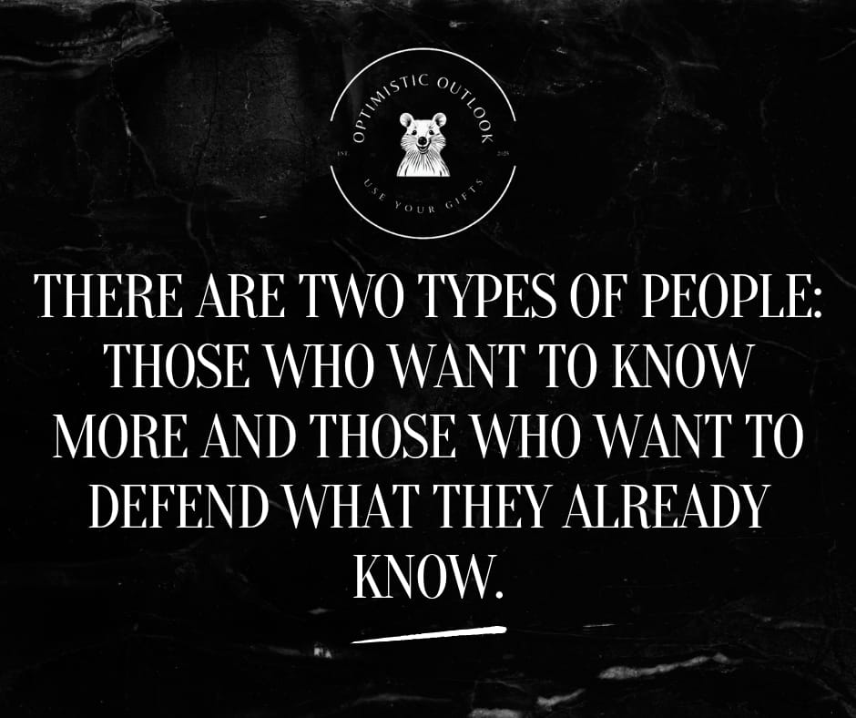 A mentor of mine used to tell me, “There are two types of people: those who want to know more and those who want to defend what they already know.”